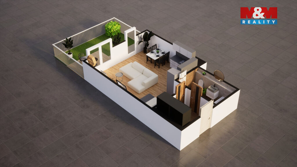 Nabízíme vám k prodeji útulný světlý byt o dispozici 1+kk s vlastní předzahrádkou, který se nachází v 1.NP moderního bytového domu, v klidné části Mladé Boleslavi, Michalovicích.