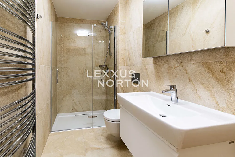Tento částečně zařízený byt k pronájmu nabízí vstupní chodbu, prostorný obývací pokoj se vstupem na terasu a plně vybaveným kuchyňským koutem (sklokeramická deska, trouba, lednice, mrazák, myčka na nádobí) včetně jídelního prostoru, ložnici a koupelnu disponující sprchovým koutem a toaletou. V nemovitosti se nachází dostatek úložných prostor. Jednotka je součástí uzavřeného komplexu, ve kterém se nachází pouze 2 nemovitosti a disponuje samostatným odděleným vstupem, který nájemníkům zaručuje soukromí. V ceně nájemného je zahrnuto parkovací stání.