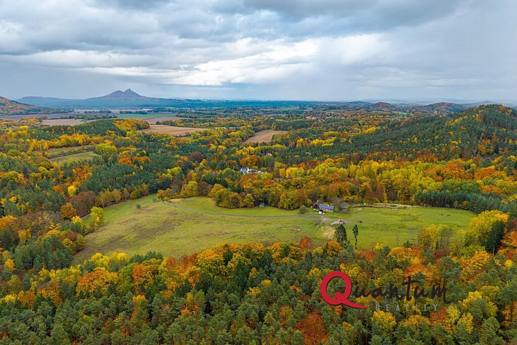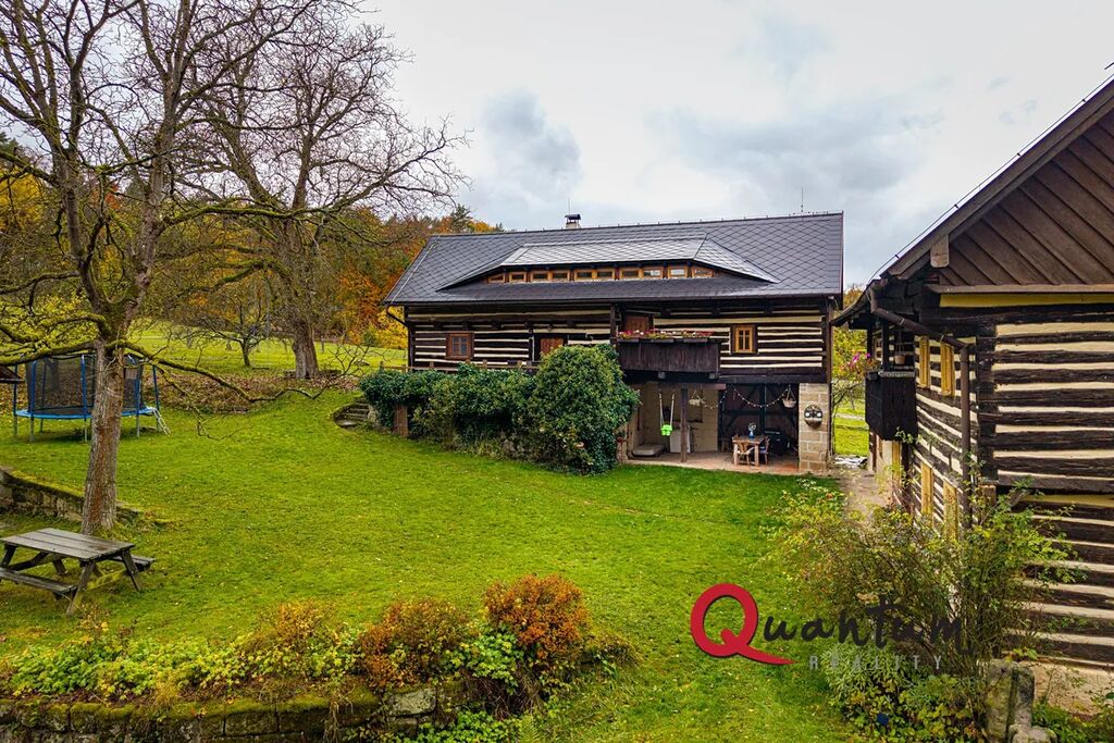 Usedlost s dvěma roubenými stavbami na pozemku 71 538 m² v CHKO Kokořínsko – Ždírecký Důl