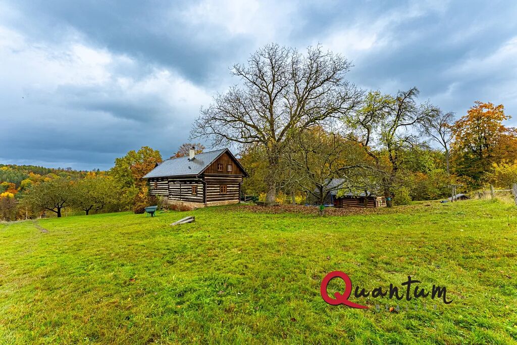 Usedlost s dvěma roubenými stavbami na pozemku 71 538 m² v CHKO Kokořínsko – Ždírecký Důl
