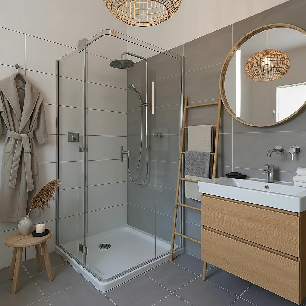 Součástí standardu jsou vinylové podlahy HFLOR, obklady RAKO Betonico, sanita JIKA a vnitřní dveře Sepos.