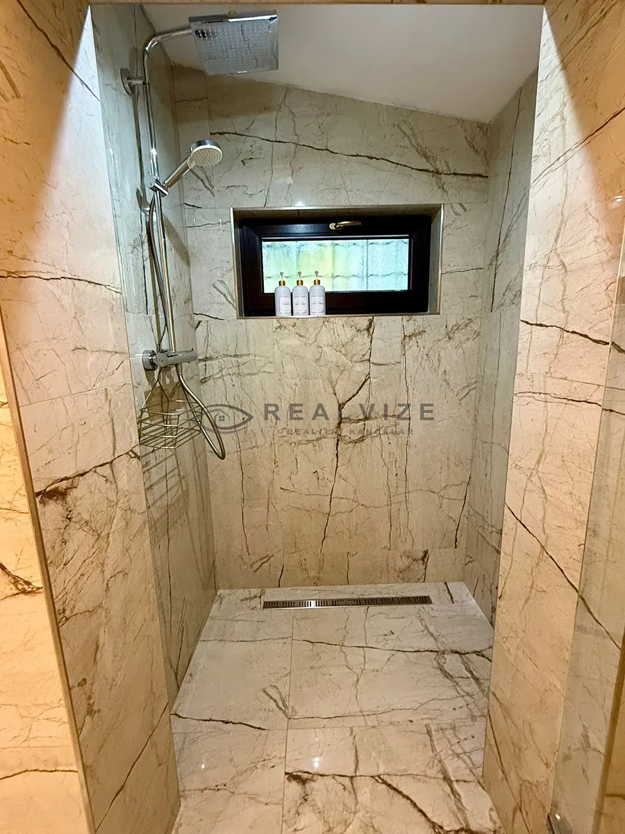Dispozice chaty je 4+1 - předsíň, jídelna, kuchyně (kuchyňská linka se spotřebiči), z kuchyně je vstup na terasu, koupelna (sprchový kout, wc, bidet, dvě umyvadla). V 1. patře jsou dva pokoje a vstup na půdu. Z jídelny vede po schodech vstup do suterénu, kde se nachází obývací pokoj s krbem, odkud vede vstup na druhou terasu. V suterénu je také technická místnost.