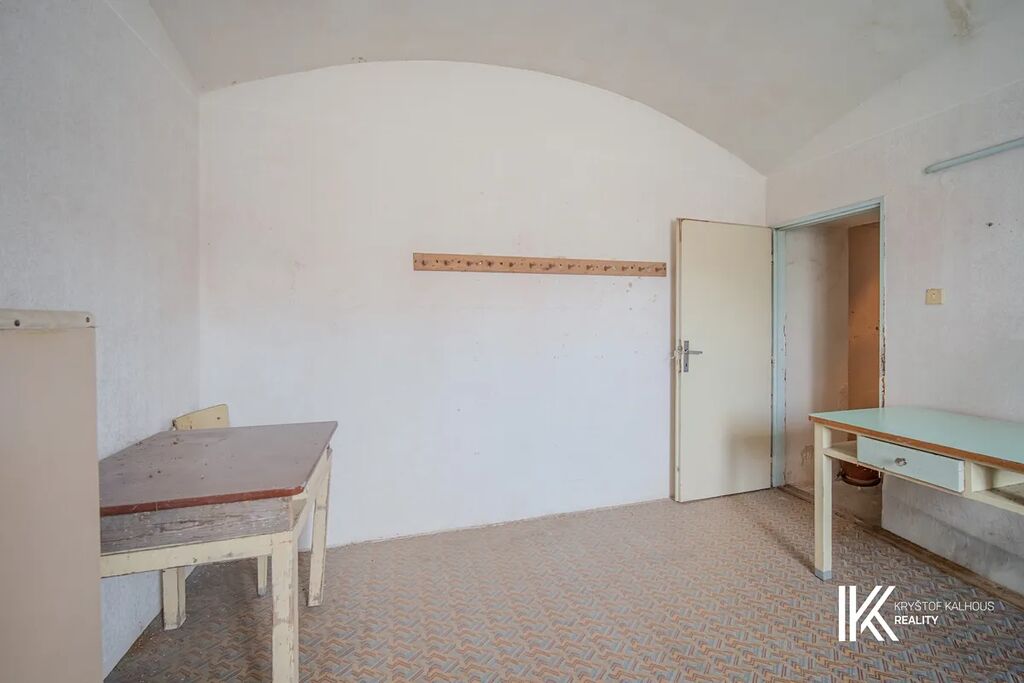 V chodbě se po pravé straně nachází samostatná toaleta a dále v čele chodby stojí koupelna, připravená na kompletní modernizaci. Na vstupní chodbu navazuje vstup do odkloněné části přízemí, začínající chodbou s technickým zázemím, schody do sklepa a schody na půdu. Tato část nabízí obrovský potenciál – z půdy lze vybudovat obytné podkroví s výhledem do krajiny, zatímco sklep může posloužit jako vinárna, sklad potravin či wellness zóna s kamennými klenbami a původními stěnami, které si zachovaly přirozený chlad. Na samotném konci domu pak naleznete poslední velký pokoj, odkloněný lehce stranou. Tento prostor, původně hospodářského charakteru, si přímo říká o přeměnu – může z něj vzniknout ateliér, dílna, nebo další obytná jednotka.