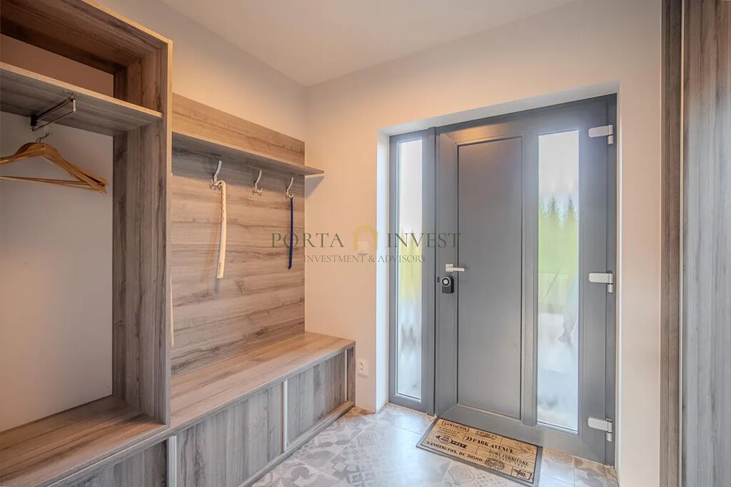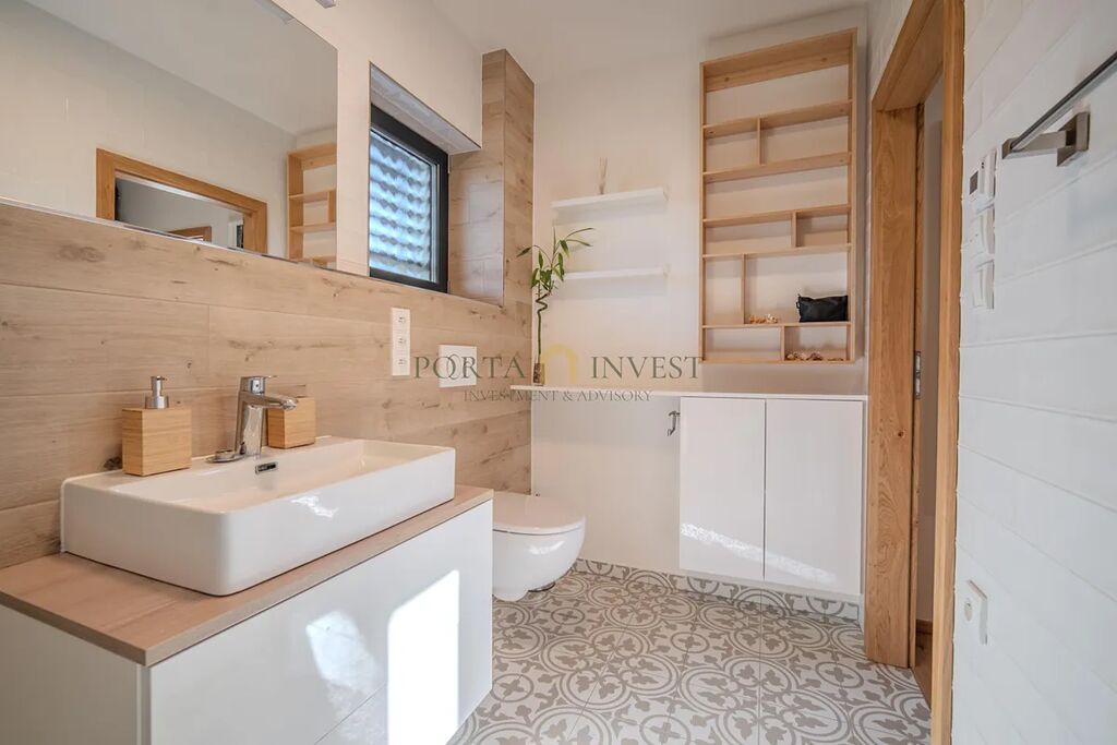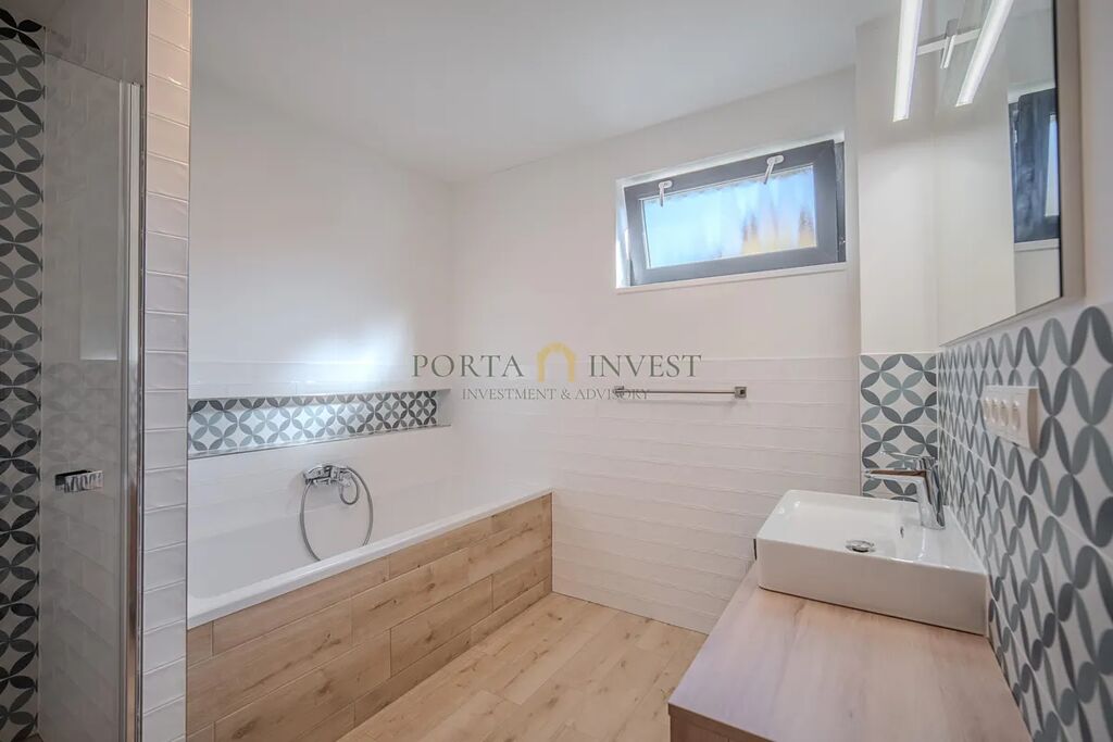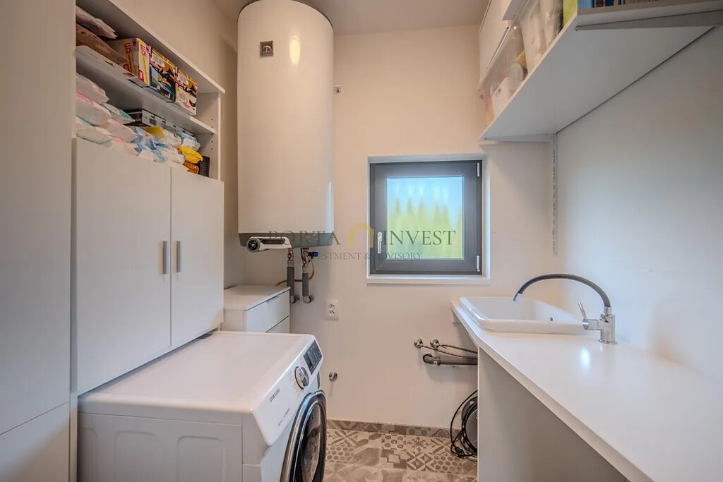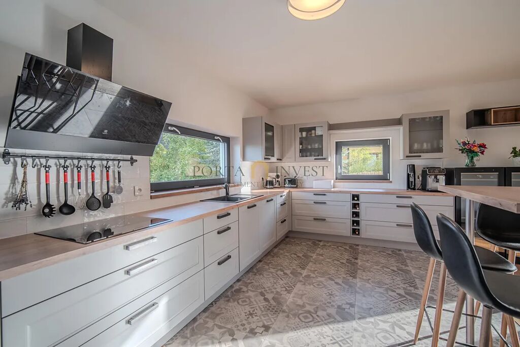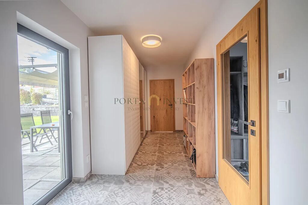 Velmi příjemné klima v celém domě vytváří hliníková okna s trojskly a elektrickými předokenními roletami, dřevěná plovoucí podlaha a stylová dlažba. Do každé obytné místnosti je rozveden internet. Dům je vytápěn efektivním elektrickým podlahovým topením se samostatnou regulací jednotlivých místností, v obývacím pokoji je provedena příprava pro instalaci krbu. Na terase domu (kam lze vstoupit z každé přízemní obytné místnosti) se nachází jak zastíněná pergola, tak i další relaxační prostor s venkovní saunou, vířivkou a sprchou. Zahrada je zde především k odpočinku (automatické sekání trávníku, závlaha). K dispozici je zahradní domek na nářadí a techniku, vkusně upravené kamenné svahy jsou osázeny zelení. Přímo na pozemku se nachází dvě parkovací stání, další stání je na vlastním neuzavřeném pozemku přímo před domem. Celý dům je zabezpečen kamerovým systémem.