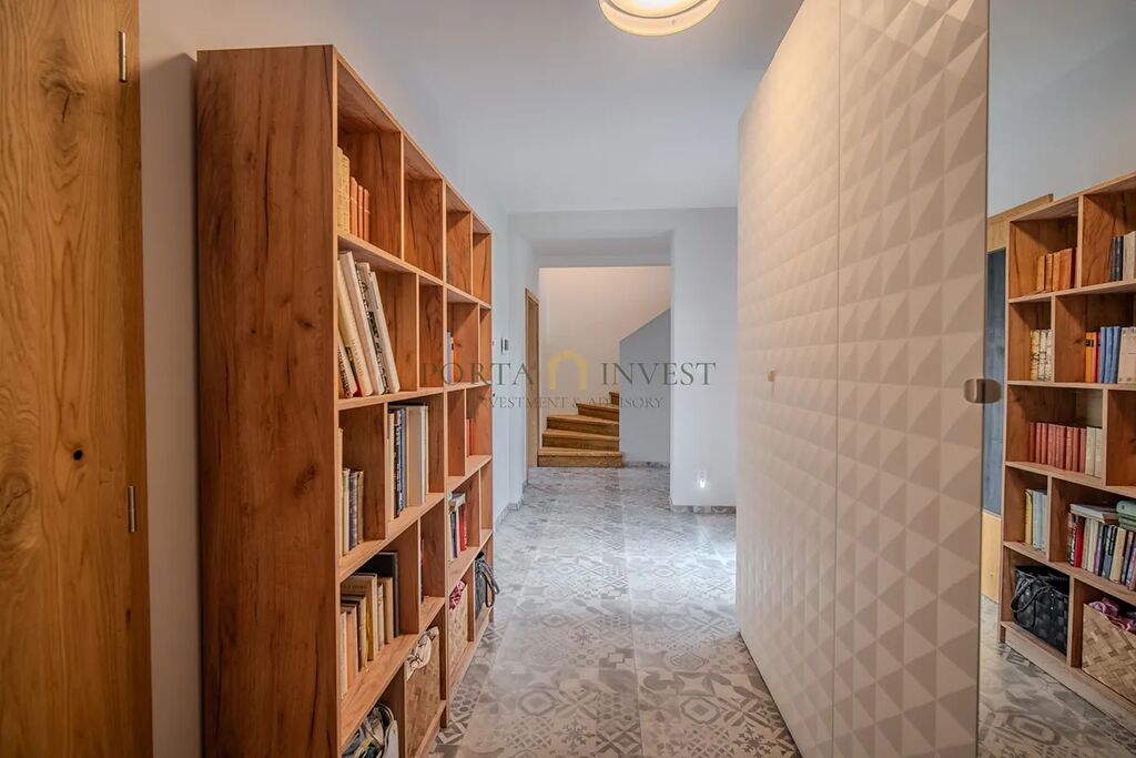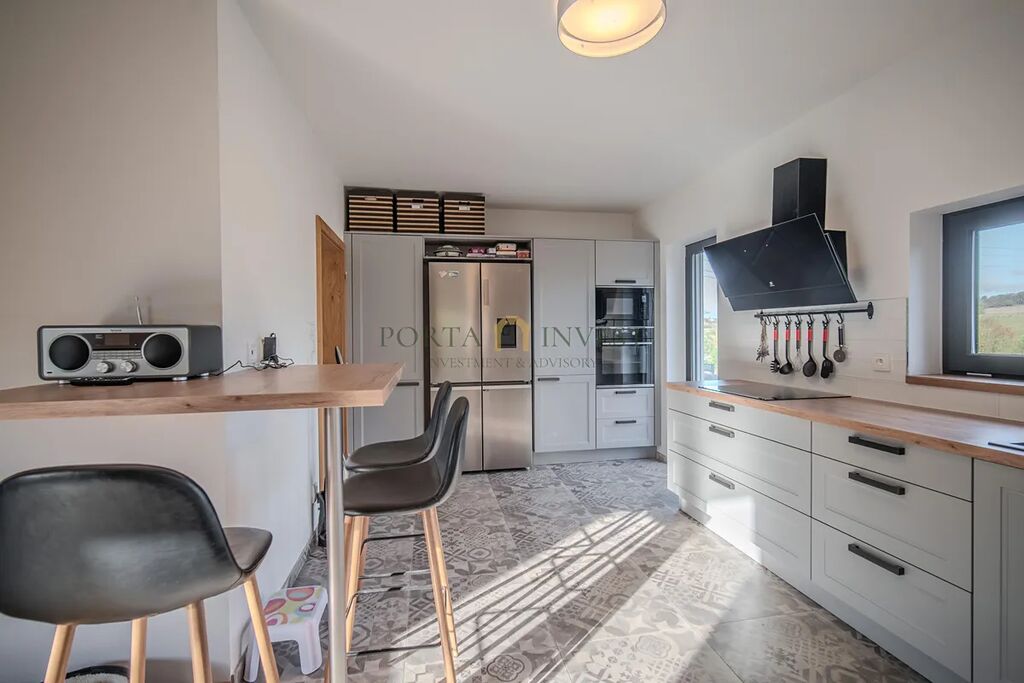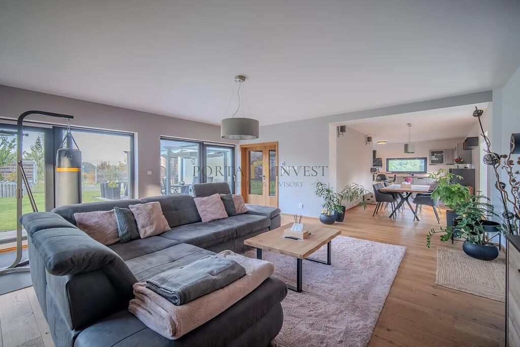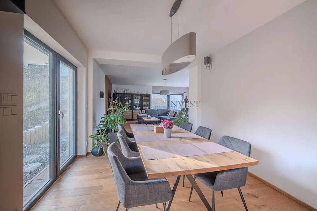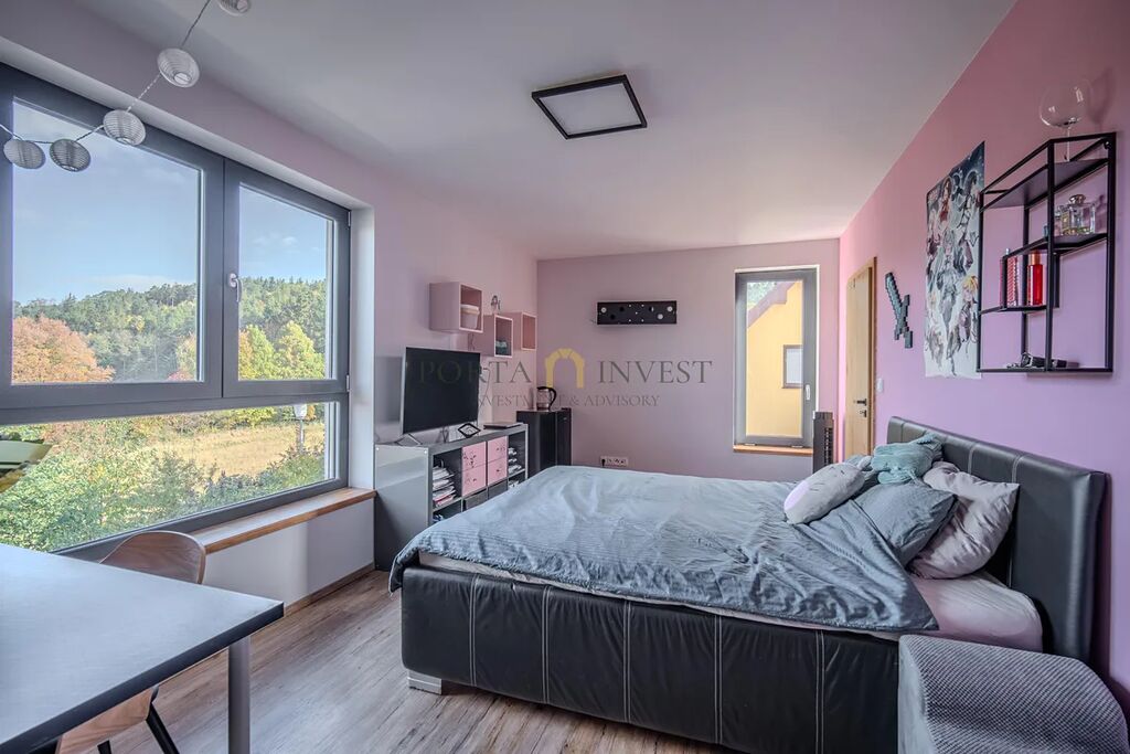 Nabízíme k prodeji prostorný a zároveň útulný rodinný dům 6+1 se zahradou (celková plocha pozemku 1315 m2), v klidné lokalitě městské části Plzeň 9 – Malesice. Stavba, kolaudovaná v roce 2023, má půdorys písmene L s velmi příjemnou jižní a západní orientací. Centrální místností domu je obývací pokoj s francouzskými okny a výhledem do zahrady, propojený s jídelnou a plně vybavenou kuchyní. V přízemí se dále nachází samostatná ložnice s vlastní šatnou a koupelnou se sprchovým koutem a toaletou. V patře jsou tři samostatné pokoje, praktická šatna, koupelna s vanou a sprchovým koutem a samostatné WC. K dispozici jsou i další promyšlené úložné prostory (vestavné skříně, nábytek).