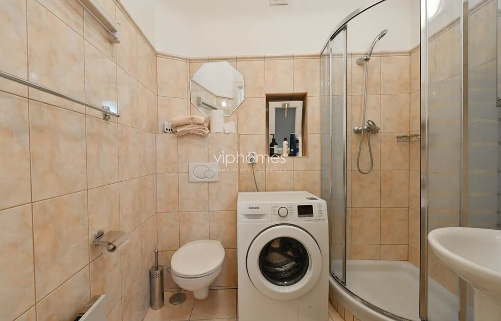 Kvalitní vybavení, zachované původní prvky, vysoké stropy, myčka, mikrovlnná trouba, TV, alarm, WiFi, vstup do budovy na čipovou kartu.
