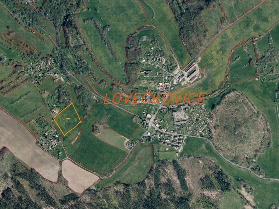 Předmětem dražby je pozemek o výměře 21 494 m2 nedaleko obce Lovečkovice, která se