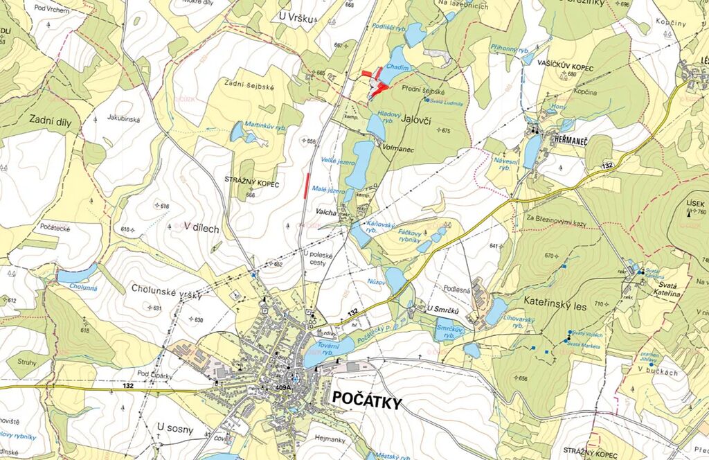 parc. č. 1293/2 (Polesí u Počátek) – vodní plocha, 258 m²