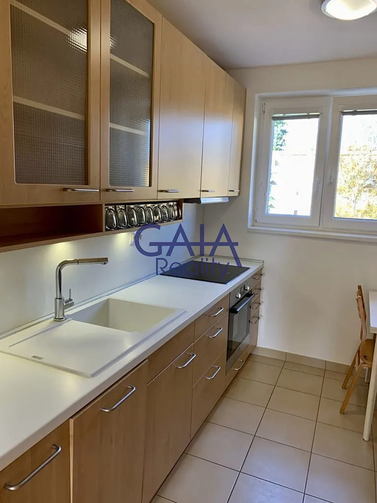Byt sestává ze tří pokojů, z nichž jeden disponuje balkonem, dále z kuchyně, chodby, koupelny se sprchovým koutem a WC. Kuchyňská linka je vybavena vestavnými spotřebiči (myčka nádobí, mikrovlnná trouba, indukční varná deska, elektrická trouba, lednička s mrazákem).