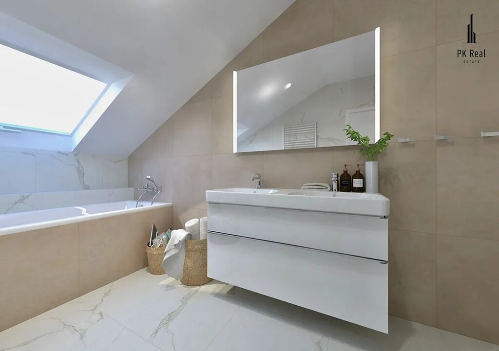 Co se standardů týká, tak můžete počítat s teplovodním podlahovým vytápěním napojeným na tepelné čerpadlo vzduch – voda, dále dům nabídne kvalitní plastová okna s izolačními trojskly, přípravu na venkovní žaluzie, přípravu na klimatizaci, velkoformátové obklady a dlažby v koupelnách, prémiové vinylové podlahy nebo vnitřní dveře o výšce 204 cm. Ve standardu investor nabízí i komín, díky čemuž budete moct trávit zimní večery u vlastního krbu. Retence dešťové vody vám poslouží k zalévání zahrady.