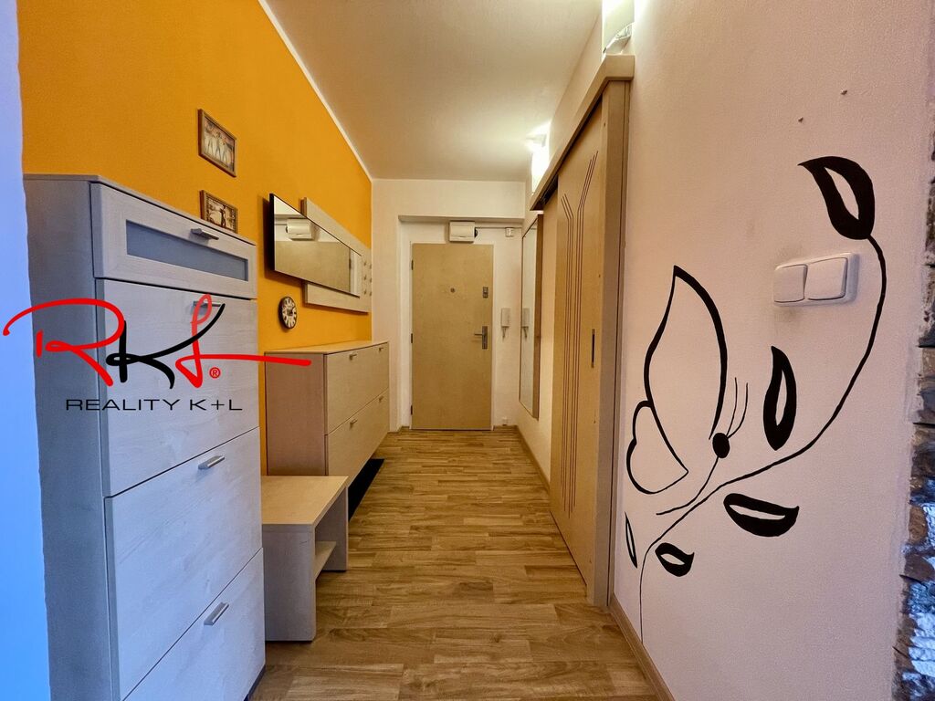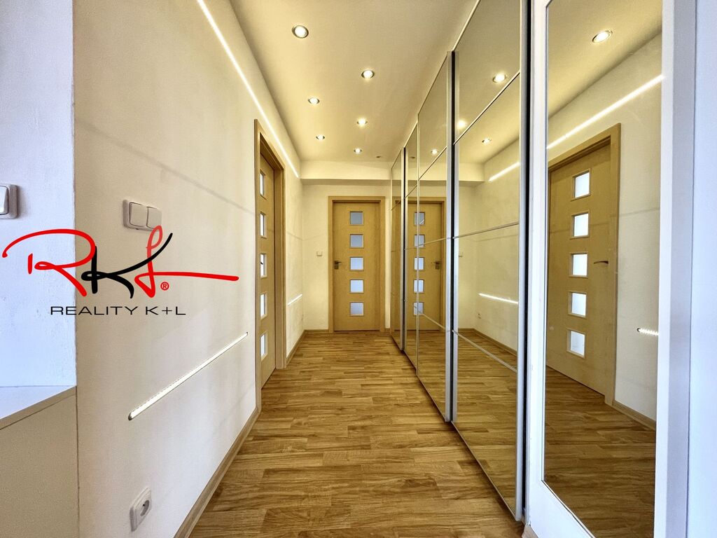 Vstupní chodba s botníky a bezpečnostními dveřmi, kuchyně vybavena spotřebiči a stolem, chodba a ložnice s vestavěnými skříněmi s vnitřními organizéry, obývací místnost s přípravou na TV a zabudovaným domácím kinem, ložnice s TV a skříní a přímým vstupem na balkon. Nevybavený pokoj. Koupelna se sprchovým koutem a pračkou, toaleta. Byt je orientován na východní stranu.