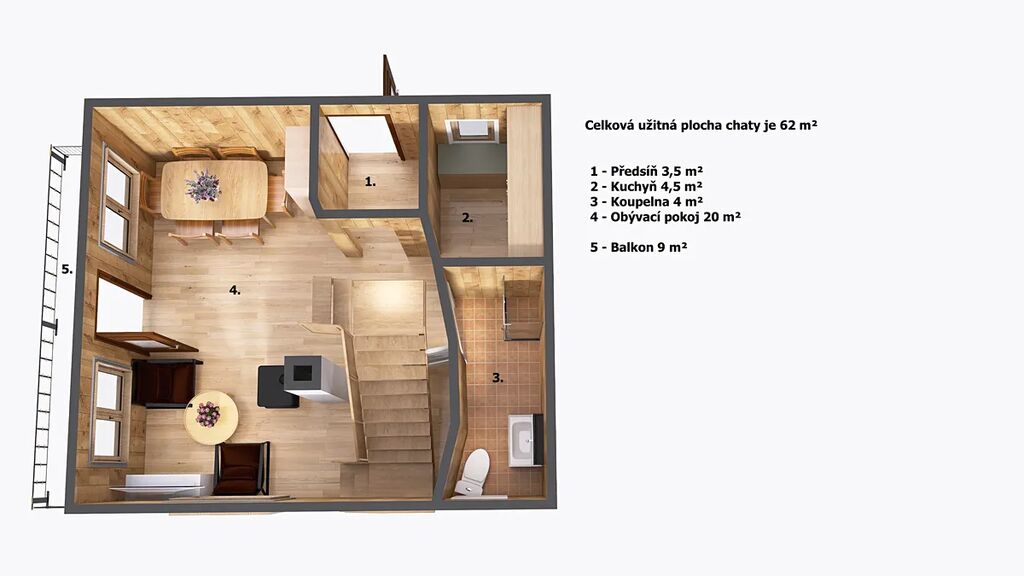 | Užitná plocha | 62 m2 |