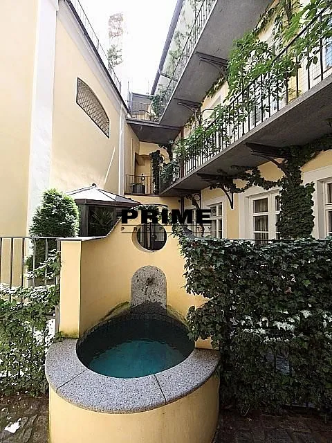 Nájemce neplatí provizi. Klasický, 3 ložnicový, nezařízený byt se 2 koupelnami k pronájmu, 4+1, 170m2, s úzkým balkonem o výměře 17m2, situovaný ve 2. patře kompletně zrenovovaného historického domu s výtahem a malebným zeleným nádvořím s fontánou.