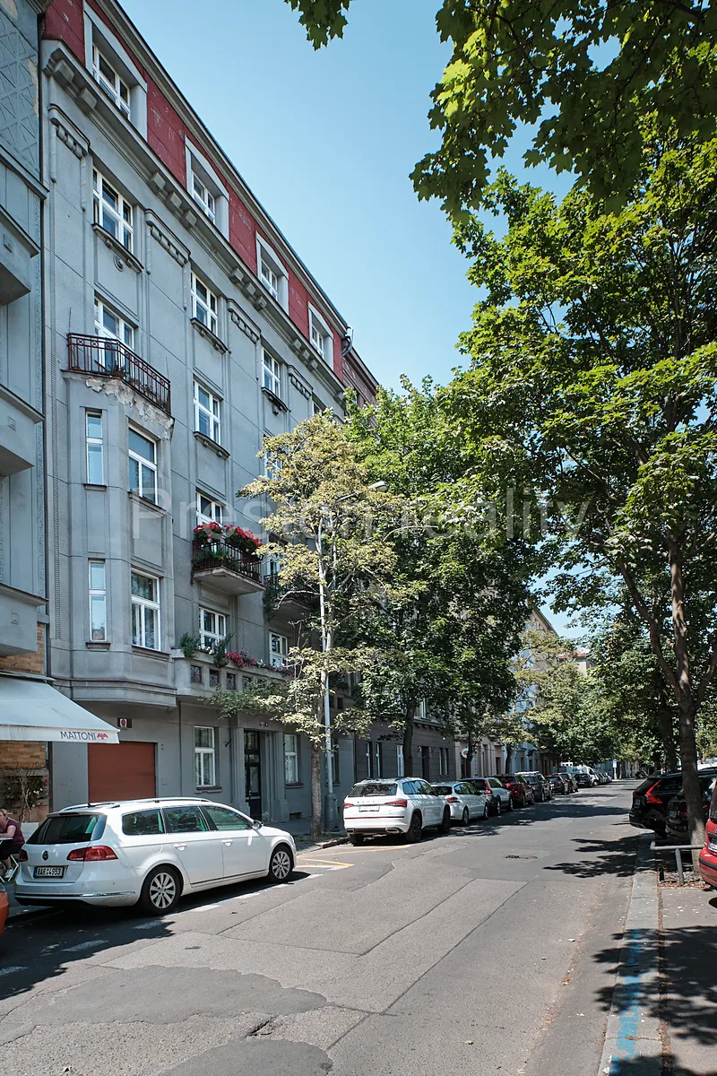 Nabízíme exkluzivně k pronájmu hezký byt 3+kk, 72 m2 ve vyhledávané lokalitě Vinohrad, přímo u parku Žižkovské věže (Mahlerovy sady) v bezprostřední blízkosti nám. Jiřího z Poděbrad. Byt je umístěn v 5. patře udržovaného činžovního domu s výtahem. Byt se skládá z obývacího pokoje (23 m2), ve které je umístěná kompletně vybavená kuchyňská linka (sklokeramická varná deska, trouba, mikrovlnná trouba, myčka, digestoř), volně stojící lednice s mrazákem a kuchyňský stůl s židlemi. Z okna obývacího pokoje (kuchyně) jsou nádherné výhledy na park s Žižkovskou věží (východní orientace). Další dva samostatné pokoje mají západní orientaci do klidného vnitrobloku s plochou 17 a 15 m2. Menší z nich je částečně vybaven nábytkem (historická knihovna. Psací stůl na fotografiích byl již odvezen) a má přístup do malé uzamykatelné komory. Větší pokoj má k dispozici šatní skříň a velkoplošnou TV.