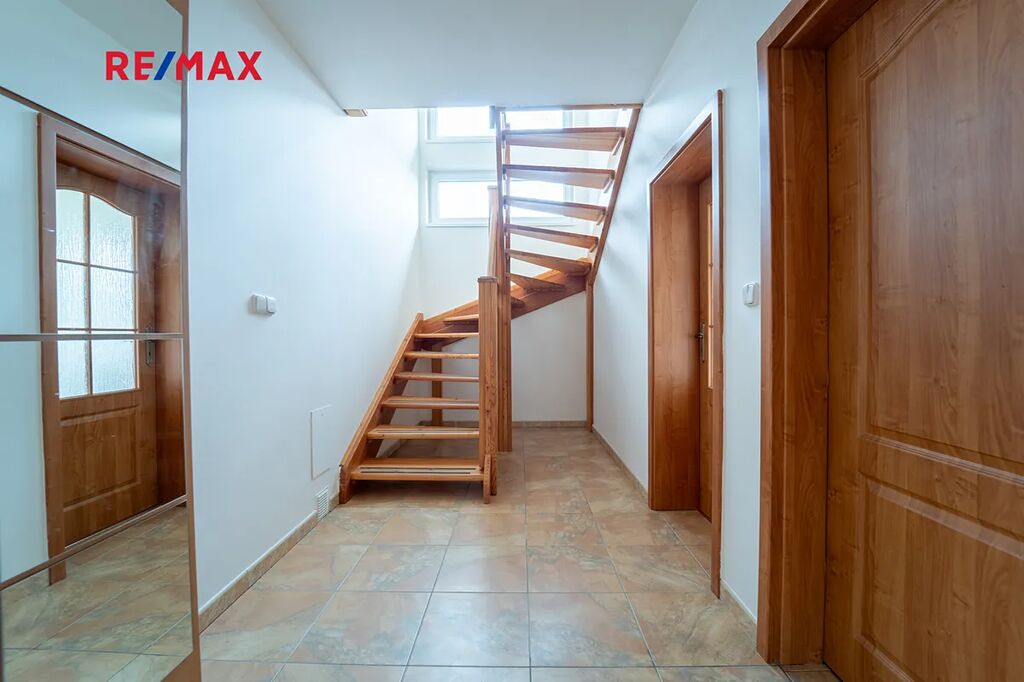 Dovolujeme si Vám nabídnout k prodeji dvoupodlažní rodinný dům o užitné ploše 146,7 m² + balkon 11,25m2 s rovinatým pozemkem o velikosti 747 m² v klidné části Dolního Bousova, ulice V Končinách. Dům byl kolaudován v roce 2008 a je v dobrém technickém stavu. V přízemí se nachází prostorný obývací pokoj s jídelnou a kuchyňským koutem se vstupem na terasu a zahradu, dále samostatný pokoj, koupelna se sprchovým koutem a WC, komora a technická místnost. Do podkroví vede dřevěné schodiště, kde jsou tři samostatné pokoje, koupelna s rohovou vanou, samostatné WC a dva pokoje mají vstup na balkon. Pod střechou je úložný půdní prostor. Dům je napojen na vodovod a kanalizaci, vytápění zajišťuje plynový kotel s rozvodem do radiátorů. Okna jsou plastová, podlahy plovoucí a dlažba. Na zahradě se nachází dřevěný zahradní domek, část pozemku je zpevněna zámkovou dlažbou, zbytek tvoří udržovaný travnatý terén, celý pozemek je oplocený. Dolní Bousov nabízí výbornou občanskou vybavenost – mateřskou i základní školu, obchody, restaurace, lékaře, poštu i sportovní areály. Město má také skvělé dopravní spojení – autobusové i vlakové linky do Mladé Boleslavi a Jičína, dobrý přístup na dálnici D10. Tento dům představuje ideální volbu pro rodinné bydlení v klidném prostředí s výbornou dostupností všech služeb.