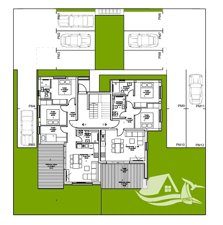 Celková plocha činí 84,32 m² a díky promyšlené dispozici se byt skvěle hodí jak pro rodinný život, tak pro rekreační pobyty. Součástí je prostorná vstupní chodba, tři samostatné ložnice, přičemž hlavní ložnice má vlastní koupelnu, dále druhá koupelna a velký obývací pokoj spojený s kuchyní a jídelnou. Z centrální obytné části vede vstup na velkou terasu, odkud se otevírá uklidňující výhled na moře.