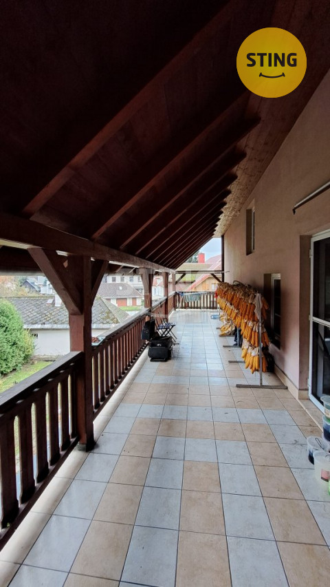 Další dvě podlaží s užitnou plochou 104 m2 jsou určená k bydlení. Z prvního podlaží o dispozici 3+1 je vstup na rozlehlou terasu o rozloze 32 m2, která je jistou dominantou tohoto domu a je z ní  velmi pěkný výhled do okolní krajiny.