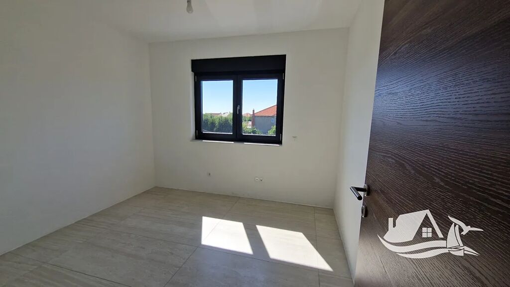 Zbrusu nový přízemní apartmán v klidné Privlace spojuje pohodlí domova s každodenní dávkou moře a slunce. Dům má pouze pět bytů a tenhle kus přízemního štěstí k němu přidává vlastní zahradu o 80 m², kde se dá snídat bosky v trávě, grilovat s přáteli i vypnout po dlouhém dni. Užitná plocha bytu je 80,99 m² a dispozice dává smysl pro běžný život: vstupní chodba, dvě samostatné ložnice, moderní koupelna, samostatné WC a praktická komora. Centrem dění je světlý obývací prostor s kuchyní a jídelnou, který plynule navazuje na zeleň venku. Celková čistá užitná plocha včetně příslušenství činí 91,49 m² a samozřejmostí je vlastní parkovací stání přímo u domu s připojením na elektřinu i vodu.