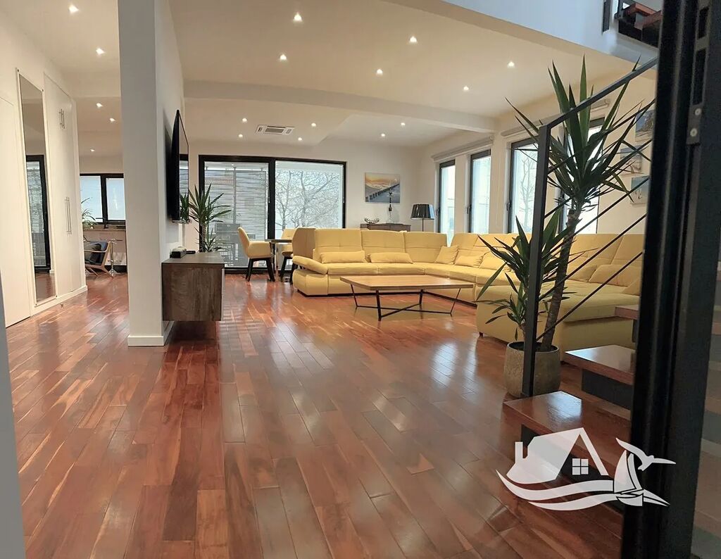 V klidné a vyhledávané lokalitě nedaleko centra Makarské se nachází výjimečná vila, která spojuje moderní architekturu, kvalitní provedení a nádherné výhledy na moře i okolní ostrovy. Tato prostorná nemovitost o velikosti 360 m² leží na pozemku 620 m² a představuje ideální místo pro rodinné bydlení i soukromý odpočinek v elegantním prostředí.