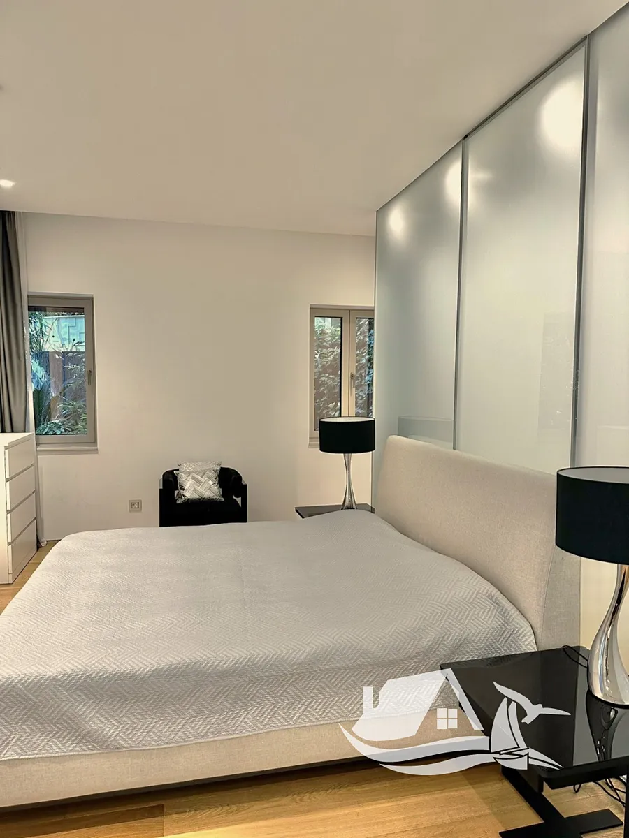 Apartmán má dvě ložnice, z nichž každá nabízí dostatek místa pro pohodlné bydlení i úložné prostory. Hlavní ložnice může sloužit jako klidné zázemí pro páry, druhý pokoj je ideální pro děti, hosty či jako pracovna. V bytě se nacházejí dvě koupelny – jedna en-suite, druhá přístupná z chodby. Obě jsou moderně zařízené, vkusně laděné a vybavené vším potřebným pro každodenní komfort.