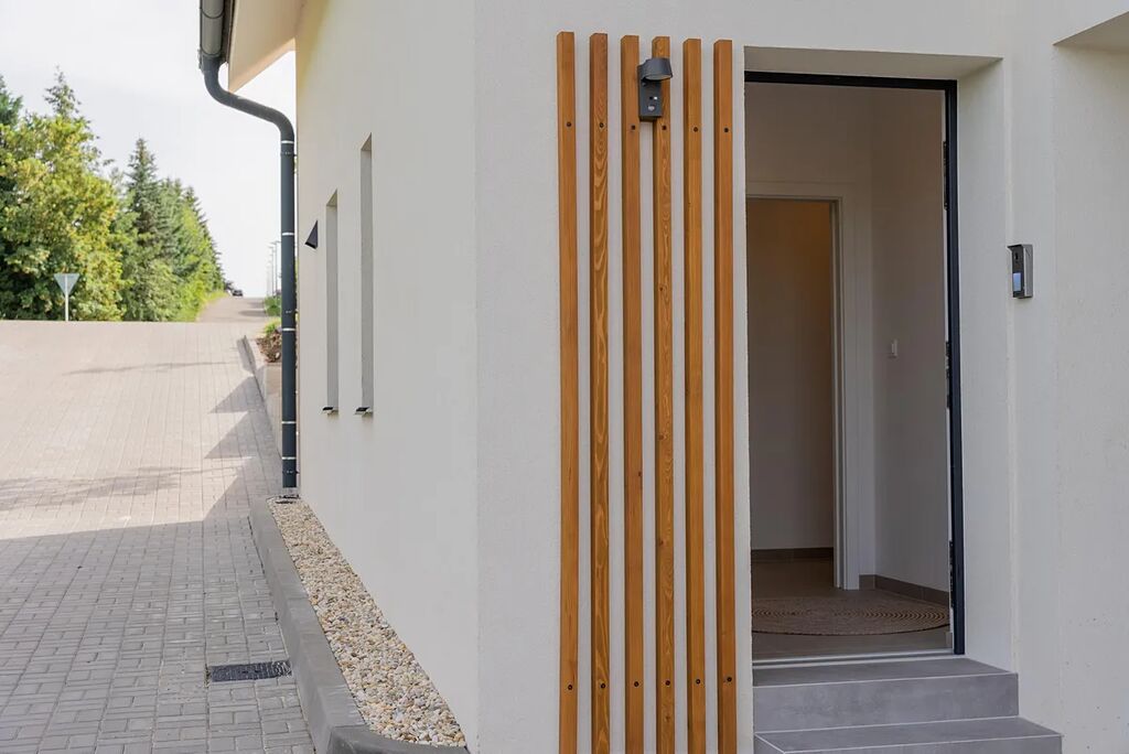 BETONG, JUBIZOL ACRYL FINISH, dveře Sapeli, tepelné čerpadlo IVT, garážová vrata TRIDO, okna Komfort EVO, terasa Gardendeck, Dveře Vekra.
