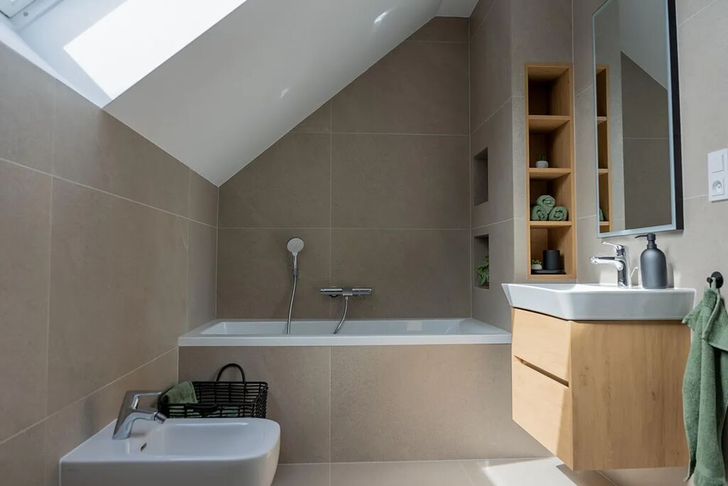 Koupelny vybavené kvalitními standardy značek Hansgrohe, Ideal Standard a Geberit.