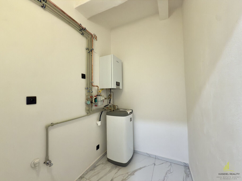 Koupelna je nově zrekonstruovaná, vybavená vanou i sprchovým koutem. O příjemné teplo se zde postará moderní tepelný žebřík, který zároveň doplňuje čistý a elegantní vzhled prostoru. Nechybí ani technická místnost kde se nachází nový plynový kotel a vývody pro pračku a sušičku, je zde dostatek místa i pro šatnu. Ve vstupní chodbě je vybudována nová šatní skříň se zrcadlem. O bezpečnost se postarají bezpečnostní dveře značky NEXT. Okna směřují jak do ulice, tak i do tichého vnitrobloku z ložnice. K bytu náleží velká společná zahrada, kterou mohou obyvatelé domu využívat pro posezení s přáteli a rodinou, odpočinek, grilování nebo třeba i vlastní zahradničení. Mimo jiné k bytu náleží i sklepní kóje.