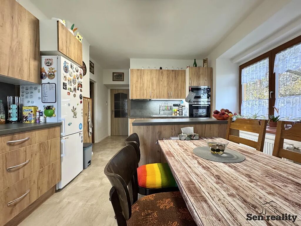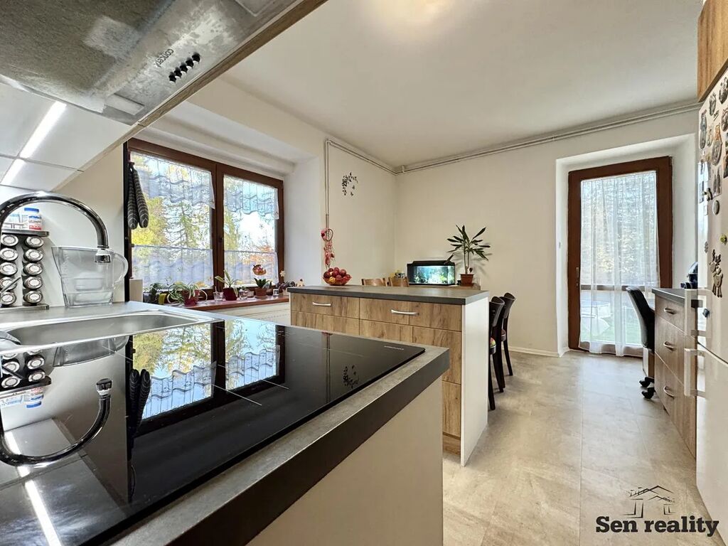 Přízemí domu prošlo kompletní rekonstrukcí - energeticky úsporné tepelné čerpadlo s nízkými provozními náklady, nové rozvody elektřiny a vody, volně stojící kamna.