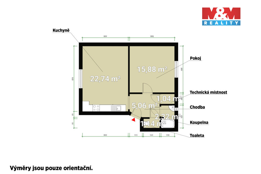 Dispozice bytu zahrnuje prostorný obývací pokoj s moderním kuchyňským koutem, ložnici a elegantní koupelnu. Vytápění zajišťuje elektrický kotel, ohřev vody bojlerem. Byt  je připraven k okamžitému nastěhování bez nutnosti dalších investic.