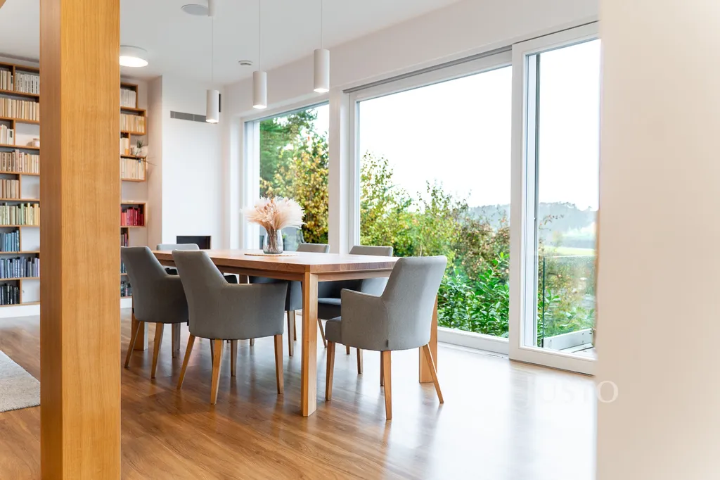 - dřevěná okna s bezpečnostním sklem Connex (nerozbitná) a posuvným HS portálem se vstupem na terasu