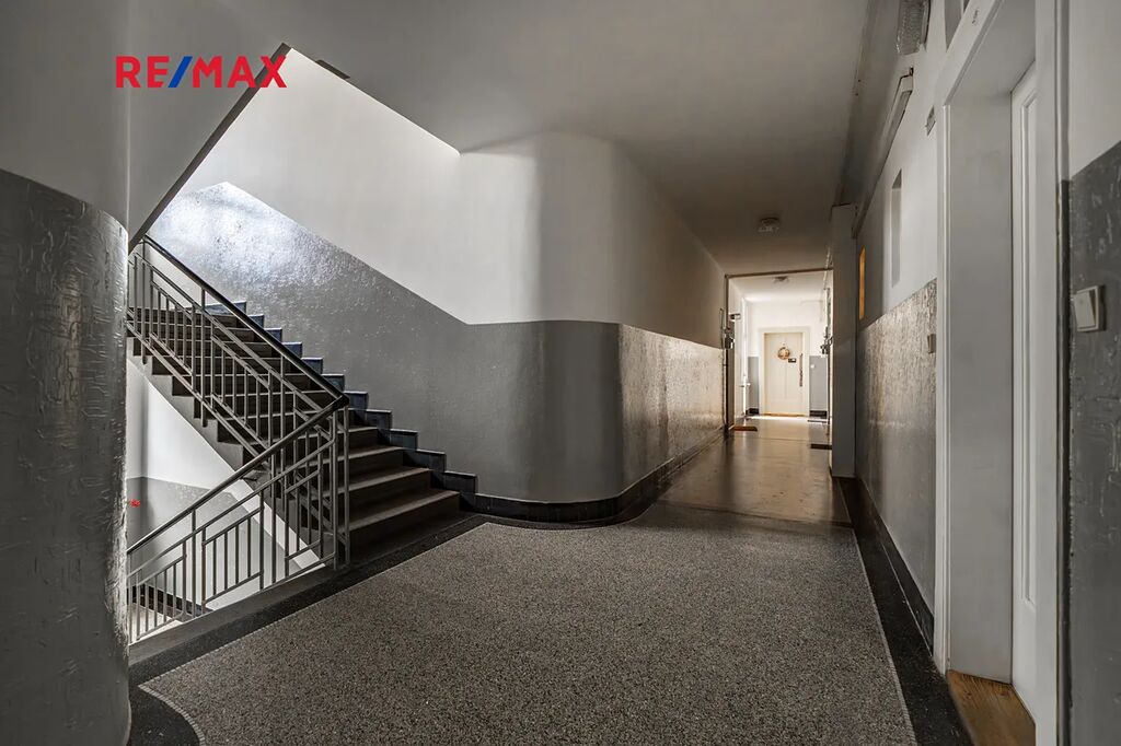 Bytová jednotka se nachází ve 3. nadzemním podlaží (2. patro) cihlového domu bez výtahu, v klidné jednosměrné ulici plné zeleně. Dům má udržovaný vchod, původní architekturu a prostorné společné prostory.