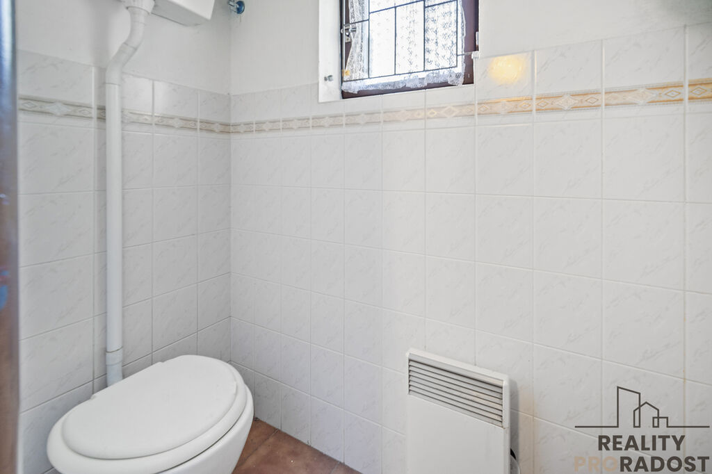 Uvnitř najdete vše, co člověk potřebuje k pohodlnému životu – zavedena elektřina, voda i septik.