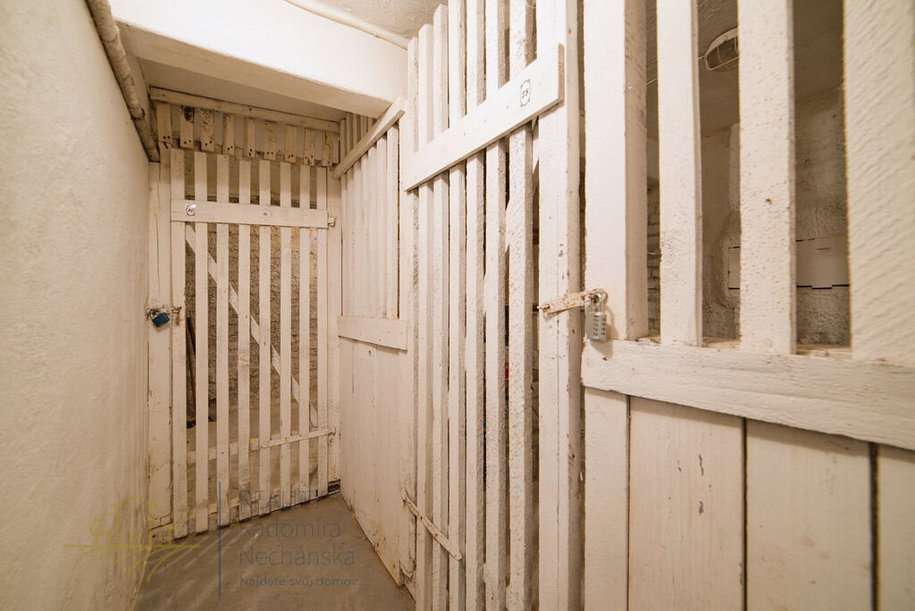 Dispozice tvoří obývací pokoj o rozloze 16m² , který je průchozí do druhého pokoje o velikosti 17 m². Z obývacího pokoje je vstup na menší balkon pro ranní kávu nebo odpočinek na čerstvém vzduchu. Kuchyňská linka je umístěna v chodbě a je plně vybavená – nechybí lednice, elektrický sporák, mikrovlnná trouba ani varná konvice. Součástí je také spíž. Byt má koupelnu se sprchovým koutem a prostorem pro pračku, dále samostatné WC. K bytu náleží prostorná sklepní koje.