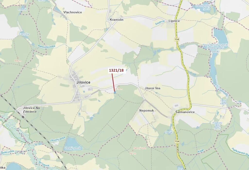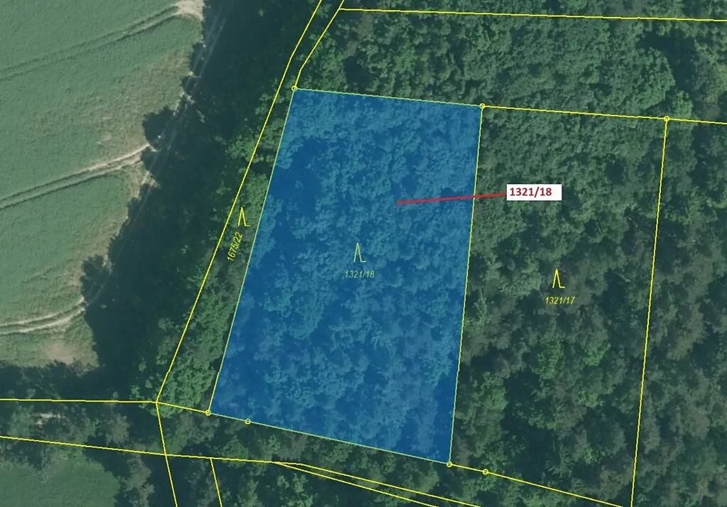 Lesní pozemek o výměře 3 594 m2, parcelní číslo 1321/18, podíl 1/1, katastrální území Jílovice u Trhových Svinů, obec Jílovice, obec s rozšířenou působností Trhové Sviny, okres České Budějovice, Jihočeský kraj.