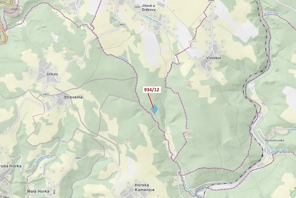 Lesní pozemek o výměře 10 166 m2, parcelní číslo 934/12, podíl 1/1, katastrální území Jílové u Držkova, obec Jílové u Držkova, obec s rozšířenou působností Železný Brod, okres Jablonec nad Nisou, Liberecký kraj. Po těžbě.
