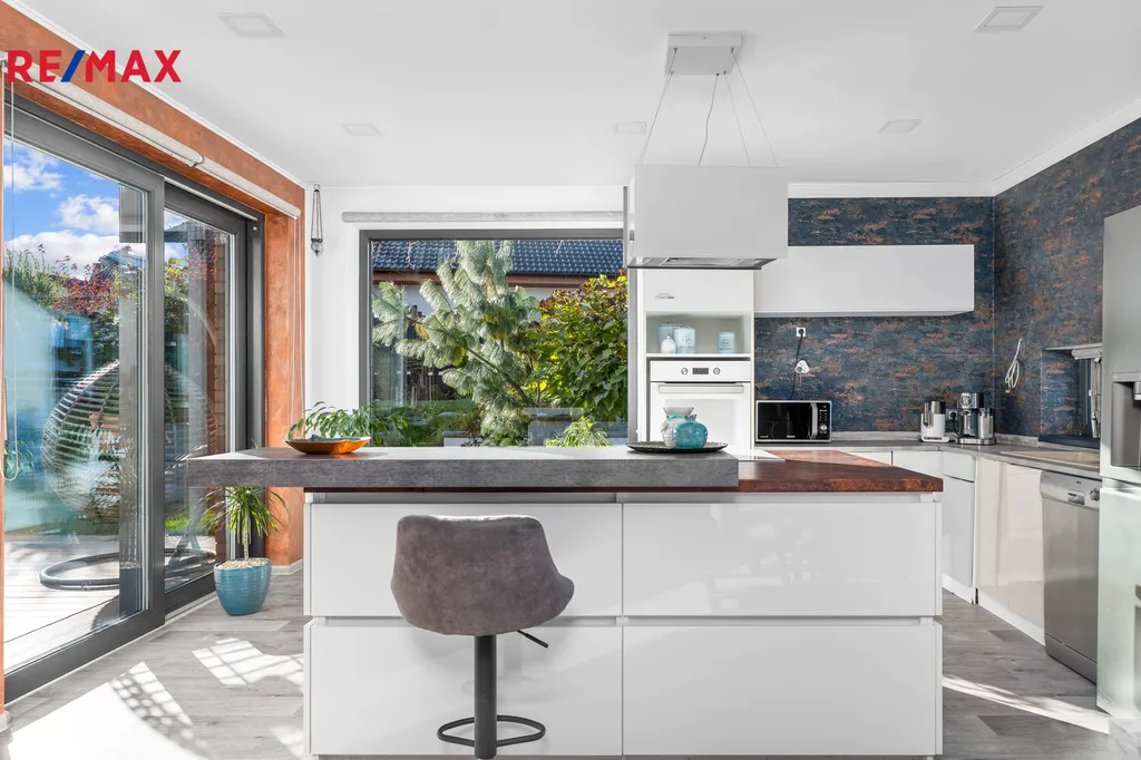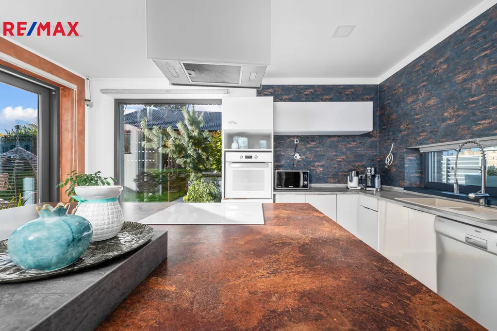 Dům nabízí 4 pokoje, které nabízí pohodlný život pro rodinu a jsou se samostatnými vstupy. Obývací pokoj, který je propojený s kuchyní s ostrůvkem a dále se zde nachází krbová kamna, která jsou ideální k posezení s celou rodinou a k relaxaci. Dům je velice prakticky navržen, vstupuje se chodbou, kde je na míru dělaná šatna, po pravé straně se nachází zádveří, dále navazuje na technickou místnost. Prostorná koupelna se sprchovým koutem, dvoj umyvadlem a vanou a WC, samosatný WC. Po pravé straně se nachází samostatná ložnice, dále 2 dětské pokoje a chodbou se navazuje vstupem do obytné místnosti s kuchyní. Velmi krásně řešený, kde rodina najde zázemí a pohodlí. Kuchyňská linka Vám nabízí plnohodnotný osvícený ostrůvek s barem, kde se nachází indukční varná deska, dále je kuchyň řešená do L.
