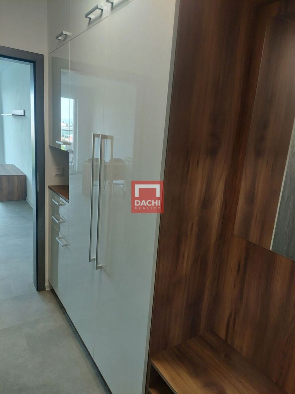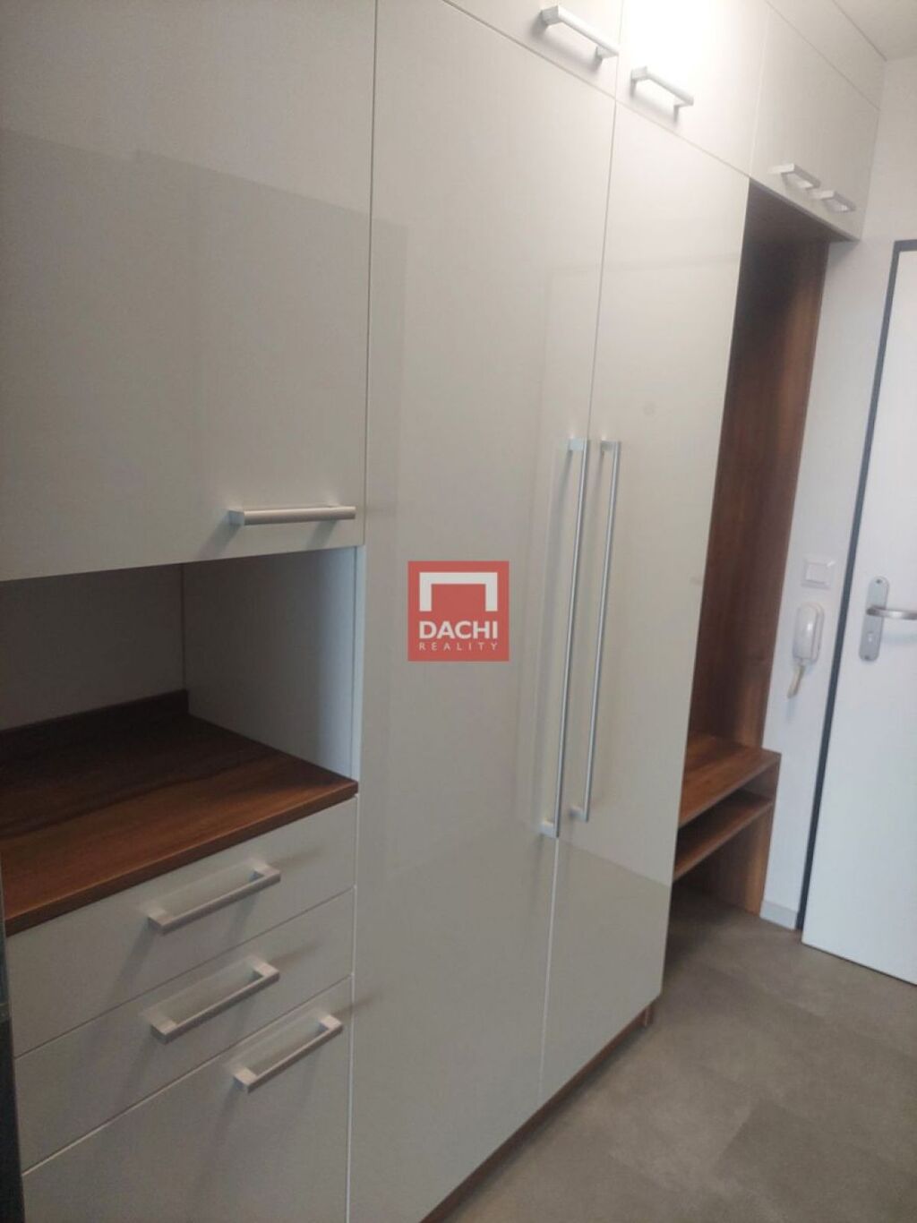 Byt je vybaven moderní kuchyní, jídelním barem a dvěma židlemi. V předsíni je k dispozici praktická vestavěná skříň, která poskytuje dostatek úložného prostoru. Celý byt je velmi světlý, vzdušný a nabízí příjemnou moderní atmosfér. Koupelna se sprch,, koutem, umyvadlem, WC - geberit a prostorem pro umístění pračky a popř. i sušičky prádla.