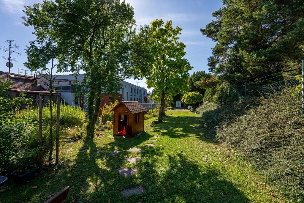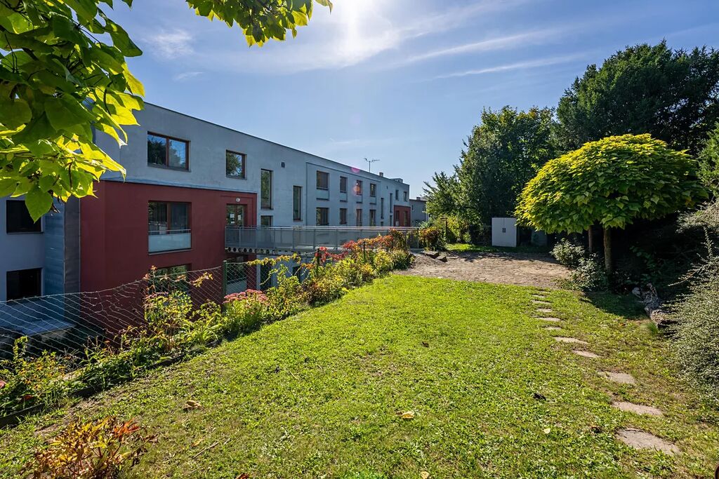 Zahrada ve vnitrobloku: Unikátní přístup do sdílené zahrady o výměře 870m2 (ve vlastnictví odpovídající spoluvlastnický podíl) s pergolou, dětským hřištěm a grilem – ideální místo pro relaxaci, posezení s přáteli nebo dětské hry, aniž byste museli opustit dům.