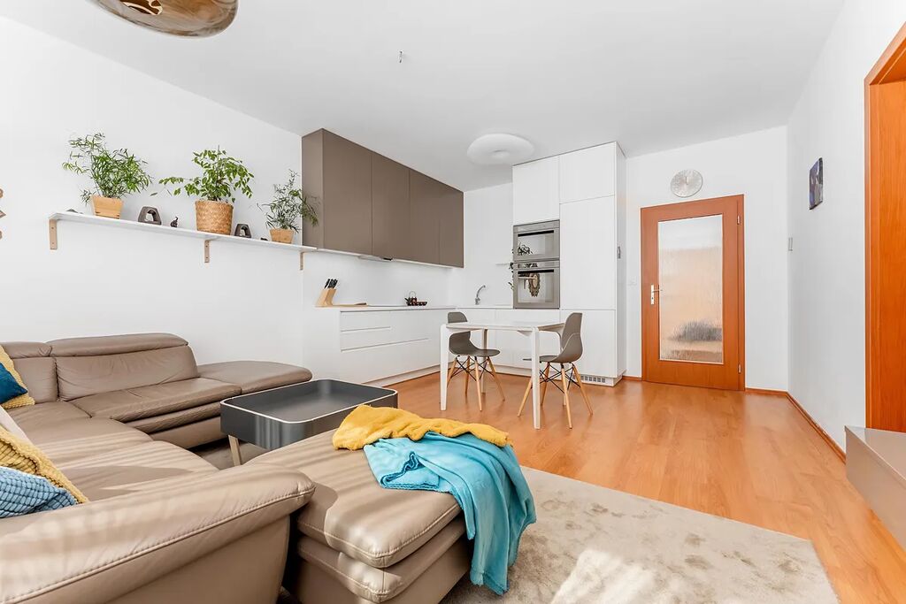 Vítejte doma v srdci Brna: Moderní byt se zahradou s možností koupě parkovacího stání v podzemních garážích přímo v domě.