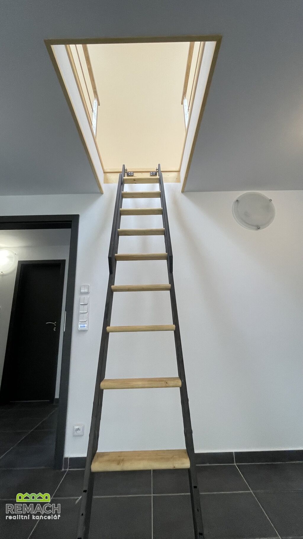 Dispozice bytu: obývací pokoj s vybaveným kuchyňským koutem, ložnice, koupelna s vanou a toaletou, vstupní chodba, obytné podkrovní prostory (dětský pokoj, odkládací prostor)
