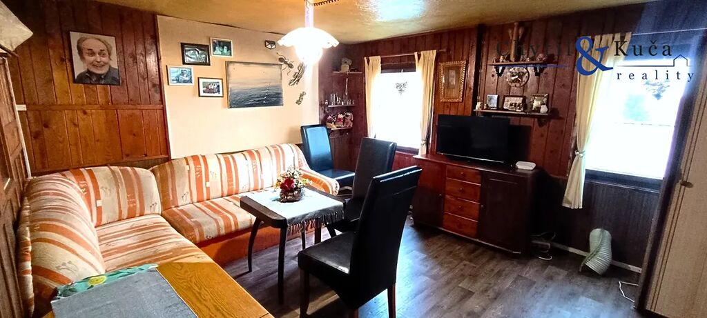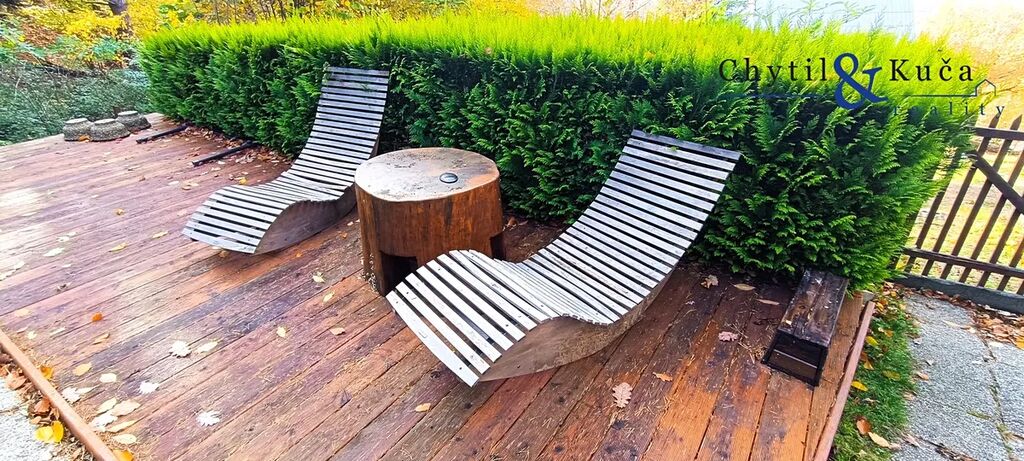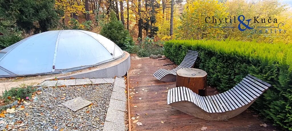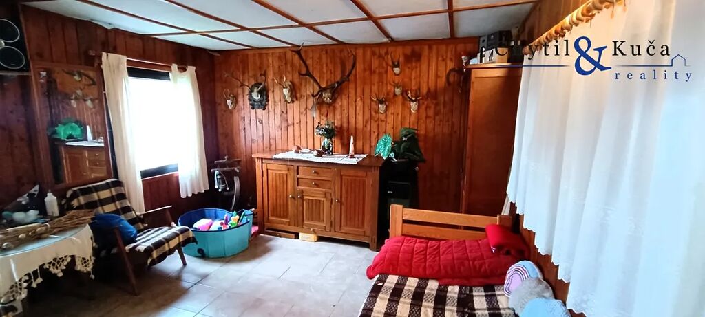 Realitní kancelář Chytil & Kuča reality Vám nabízí v zastoupení majitele k prodeji rekreační objekt vč. pozemku v obci Chvalčov. Jedná se o chatu se dvěma čísly evidenčními, ležící na tichém a klidném místě nad chatovou zástavbou na okraji obce s krásným výhledem do okolní krajiny. Chata je dřevěná na betonovém základu a její užitná plochá činí 95 m2. V 1. NP objektu se nachází kuchyňský kout s obývacím pokojem, další obytný pokoj, technická místnost vč. koupelnového koutu a WC. Z 1. NP je taktéž vstup do menšího sklepa. V 2. NP se nachází dvě velké, samostatné ložnice. Vytápění chaty je řešeno krbovými kamny a ohřev vody pak elektrickým kotlem. Objekt je napojen na elektřinu a zdroj vody je pak z lesního pramene. Objekt disponuje dřevěnými okny s okenicemi. Chata stojí na vlastním, mírně svažitém pozemku o celkové ploše vč. zastavěné plochy 973 m2. Užitná plocha chaty pak činí 95 m2. Na pozemku nalezneme pergolu s posezením a grilem, dále pak kůlnu, skleník, kryté stání pro auto a v neposlední řadě taktéž krytý bazén s dřevěnou terasou a lehátky. Veškeré vybavení je součástí prodeje. Možný dojezd autem přímo k chatě ( přístup přes ostatní pozemky zajištěn věcným břemenem ). Obec Chvalčov se nachází v okrese Kroměříž a disponuje základní občanskou vybaveností. Jedná se o velice vyhledávanou rekreační oblast v letních i zimních měsících. Na dosah nalezneme turistické a lyžařské centra jako Tesák a Troják, koupaliště na Rusavě a možnost spousty výletů do okolních míst - vyhledávané poutní místo Hostýn, rozhledna Maruška a nejvyšší hora Hostýnských vrchů Kelčský Javorník s rozhlednou. Jedná se o ideální místo pro odpočinek s dostatkem soukromí v obklopení lesů a přírody. Doporučujeme prohlídku. V případě financování nemovitosti v rámci hypotečního úvěru, bude tento úvěr výhradně zajištěn přes našeho hypotečního partnera. Pro více informací a pro případnou prohlídku neváhejte kontaktovat makléře.