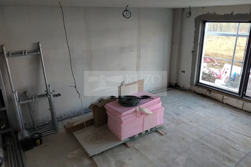 K domu náleží terasa z betonové dlažby s možností zastřešení, venkovní osvětlení a parkovací plocha pro dvě vozidla. Interiéry jsou laděny v moderním stylu, podlahy tvoří kombinace vinylu a dlažby, přechody jsou řešeny bez prahů pro maximální komfort. Termín dokončení stavby bude v 2Q roku 2026.