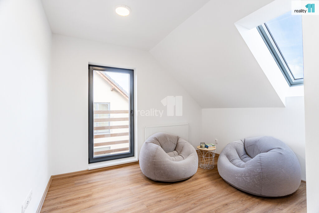 Tento řadový dům s dispozicí 5+kk nabízí dostatek prostoru pro celou rodinu. Otevřený obývací prostor s kuchyní plynule přechází na terasu orientovanou do zahrádky, kam po celý den proudí světlo. Každý řadový dům je vybaven elektrokotlem a fotovoltaickou elektrárnou, což zajišťuje nízké provozní náklady. Nechybí ani krbová kamna, která jistě oceníte během chladnějších dnů. Součástí je zahrada ideální pro rodinné chvíle i relax, nechybí ani možnost bezproblémového parkování, neboť ke každé řadovce náleží parkovací stání.