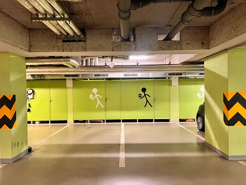 K bytu náleží dvě kóje umístěné v suterénu za parkovacími stáními, tyto kóje jsou každá o rozměru 9,5 m². Vlastní parkovací stání v této části města představuje velkou výhodu, zejména pak tyto, jelikož jsou přímo naproti výjezdu z podzemní garáže.