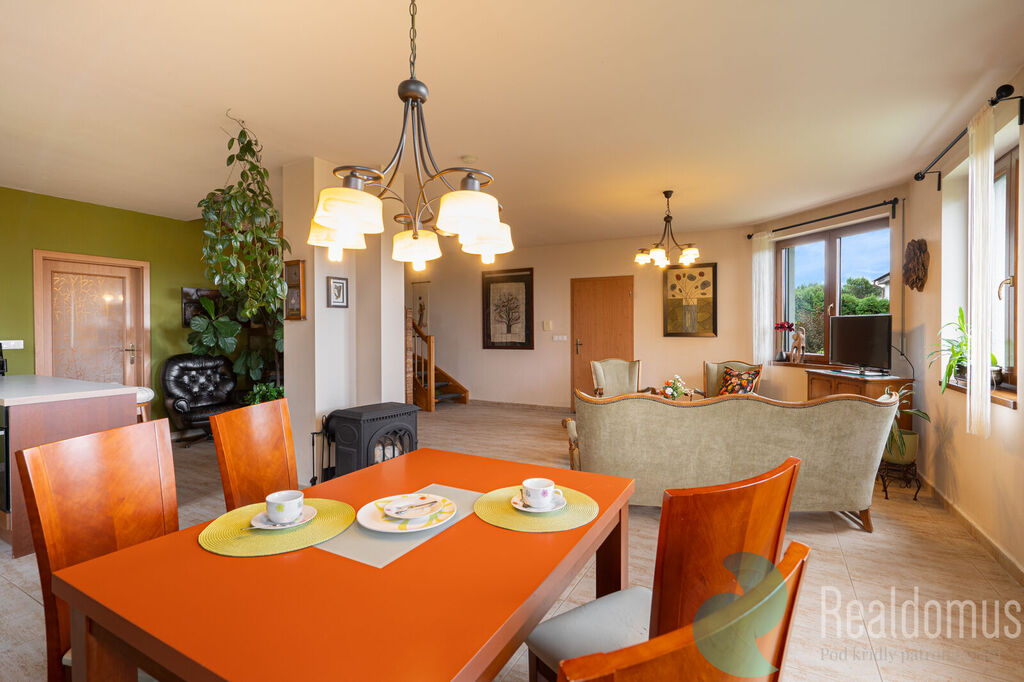 Dům je v současné chvíli rozdělen na 2 bytové jednotky. Hlavní bytová jednotka 3kk s velkorysou užitnou plochou 159 m2 se skládá z nádherné prosvětlené hlavní místnosti s kuchyňským koutem o rozloze 56 m2, dvou velkých ložnic (31 m2 a 27 m2), dvou koupelen (7 m2 a 6 m2) a technické místnosti. Druhá bytová jednotka 1kk má obytnou místnost s kuchyňským koutem (31 m2) a koupelnu 6 m2. Oba byty mají společnou chodbu a mohou být součástí jedné bytové jednotky, kdy jedna z ložnic bude mít vlastní  koupenu s toaletou.  Velký potenciál má toto dělení pro soužití více generací, či odrostlejší děti, které mohou mít v domě své samostatné zázemí.