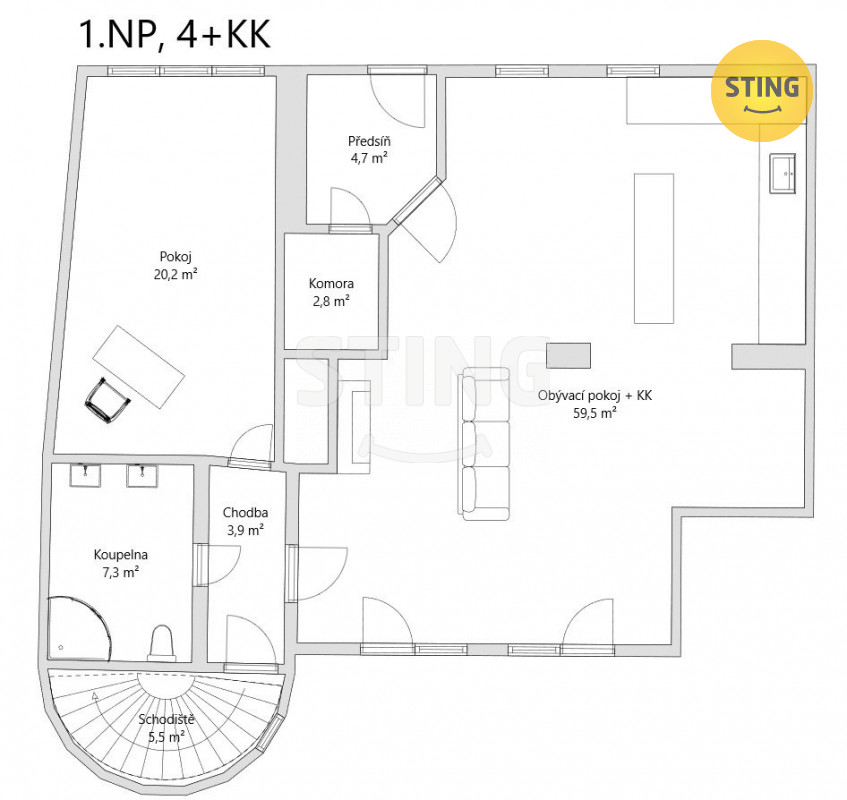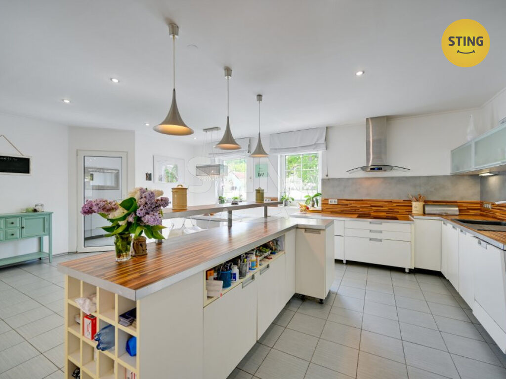 V přízemí vás uvítá prostorná kuchyně s jídelnou propojená s obývacím pokojem, odkud se vychází na velkou, zastřešenou terasu — ideální místo pro relaxaci i rodinné oslavy. Dále se zde nachází koupelna s WC a pracovna (kolaudovaná jako kancelář), která umožňuje pohodlné propojení bydlení s podnikáním.