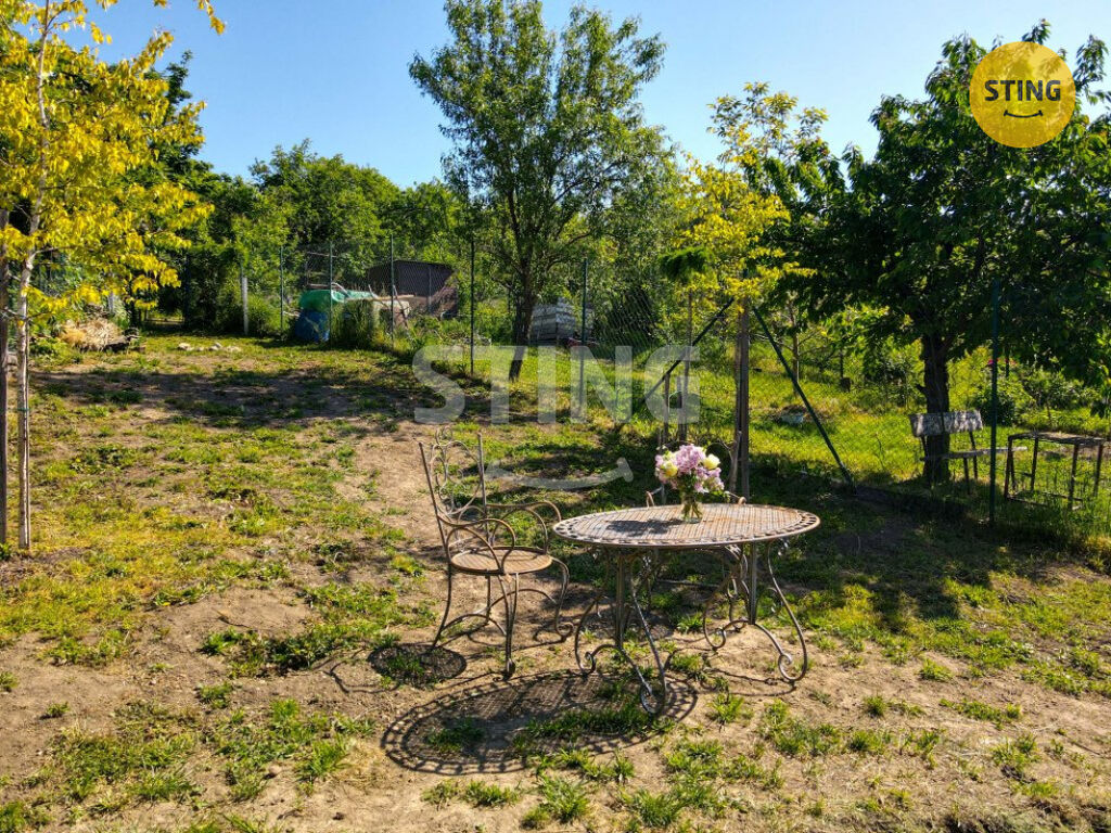 Pozemek o rozloze 740 m² je rozdělen na užitkovou a odpočinkovou zónu. Na spodní terase máte dostatek úložného prostoru na zahradní náčiní, a zároveň zde můžete dobudovat bazén či jinou relaxační zónu. Po schodech se dostanete do horní části zahrady s dalším prostorem pro odpočinek.