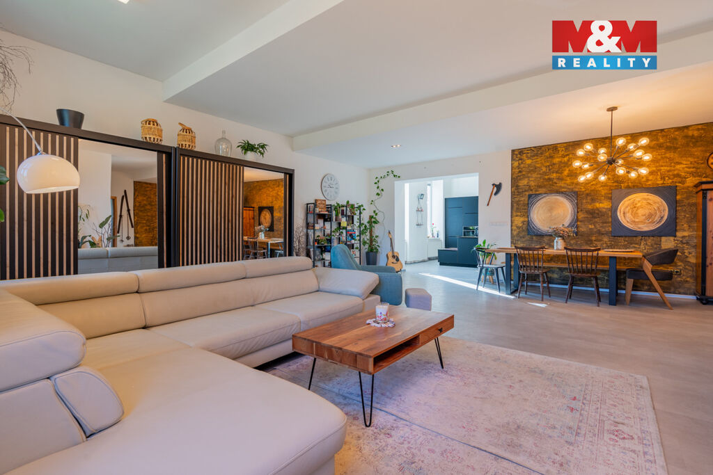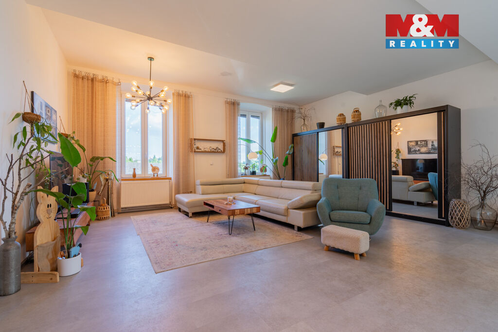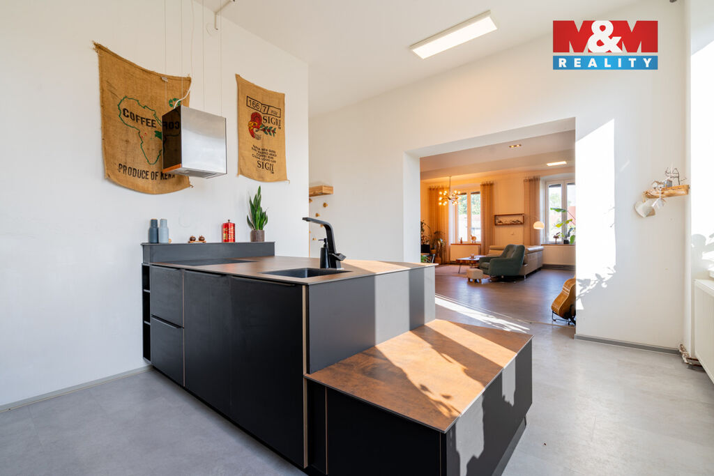 Dominantou je prostorná kuchyň OCA-Küchen v matné černi s měděnými detaily, stylová koupelna s dvojitým umyvadlem a vzdušný obývací pokoj s přípravou na krb. Ložnice i dětský pokoj jsou světlé a útulné. Součástí je sklep a parkování u domu. Nová fasáda, střecha i zateplení budovy, bude zanedlouho dokončeno a již je zaplaceno. Využití zahrady po domluvě s majitelem. Domluvte si prohlídku a nechte se okouzlit, objevíte zcela výjimečný Genius loci. Dále k bytu patří podíl 1/8 na společných částech a parkovací místo před domem. Případnému zájemci o zahradu zajistíme jednání v tomto směru.