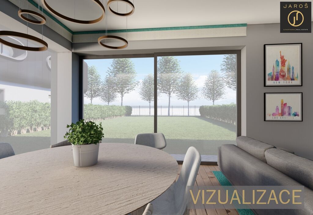 Nabízíme k prodeji byt 3+kk o celkové rozloze 91 m2 se zahradou 369 m2, sklepní prostor u vlastního parkovacího stání v projektu Rezidence Zámecký Vrch. Nemovitost je navržena ve vysokém ekologickém a ekonomickém standardu, což se projeví i na vašich nákladech za energie. Energetická třída domu je nejvyšší A dle energetického průkazu domu. Každá bytová jednotka je osazena komínovým tělesem s možností umístění krbové vložky. Střecha je osazena solárními panely – energetická soběstačnost domu. Tvar a vzhled této uzavřené rezidence se naprosto vymyká současné typické výstavbě domů. Součástí nemovitosti jsou zahrady, parkovací stání k jednotlivým bytovým jednotkám (včetně možnosti dobíjení elektrovozidel) s možností přikoupení dalšího parkovacího stání, studna, aj.  Tato nabídka je ideální pro ty, kteří hledají moderní a elegantní bydlení ve výjimečné lokalitě.