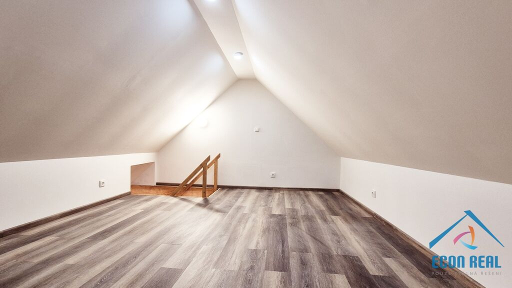 Byt je nově vybudovaný a vybavený kuchyňskou linkou se sklokeramickou varnou deskou, elektrickou troubou, dřezem, digestoří a velkou lednicí s mrazákem. Na podlahách vinylové krytiny. Podlahová plocha bytu je 49,1 m2 s tím, že obývací pokoj má jednu sešikmenou stěnu a ložnice je plně podkrovní.